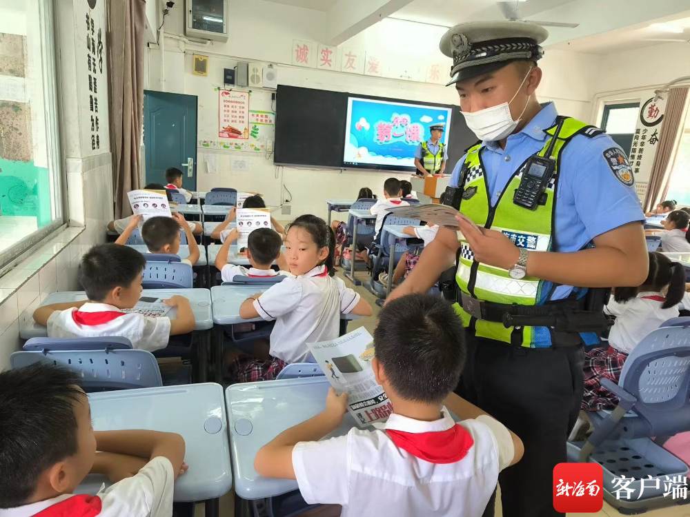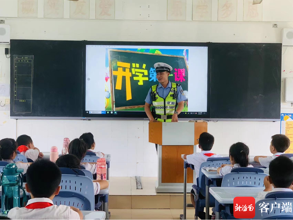 三亚市交警支队民警围绕“如何安全出行”“乘车注意事项”等内容,深入浅出地为同学们上好新学期交通安全“第一课”。记者 胡丽齐 摄