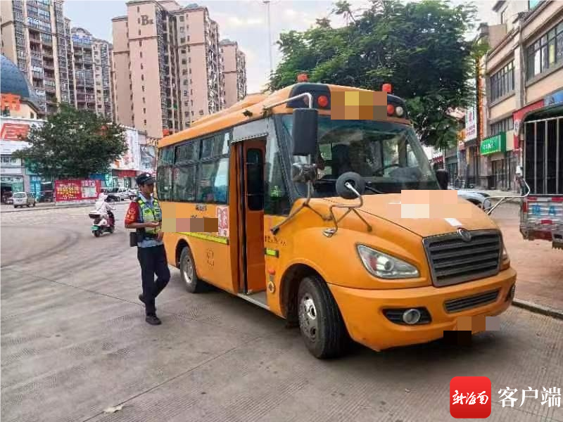 2023年9月8日8时17分,澄迈公安交警根据上级工作部署,在辖区范围内开展华东中南片区夏季交通安全整治行动第二波次区域会战。行动期间,执勤交警在老城青龙路四季康城二期路段卡口处,发现一辆校车行为有些可疑,便让其停下接受进一步检查。