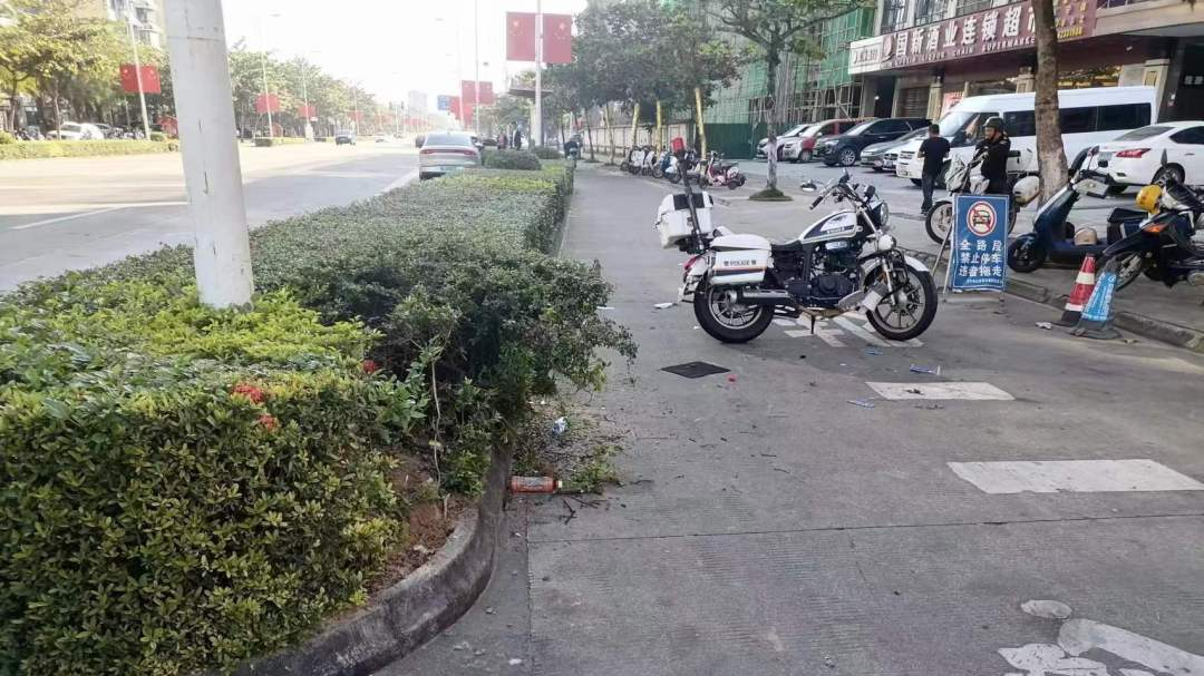 万宁公安交警驾驶警用摩托车在辖区执勤时,被一辆小型汽车撞倒,事发后当事人驾车逃离现场。