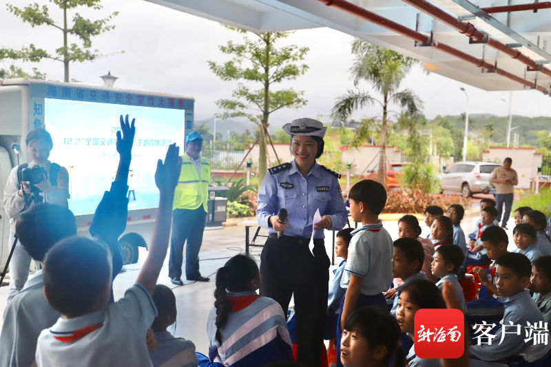 在辖区内的五指山市第一小学、五指山市第三小学,五指山市公安局交通管理大队的工作人员从学生的认知和接受能力出发,用活泼生动的语言、面对面讲解、答题奖励等方式,向学生们传递交通安全的法治观念。并鼓励以“小手拉大手”把学到的知识带回去讲给家人和朋友,共同营造安全文明的交通环境。