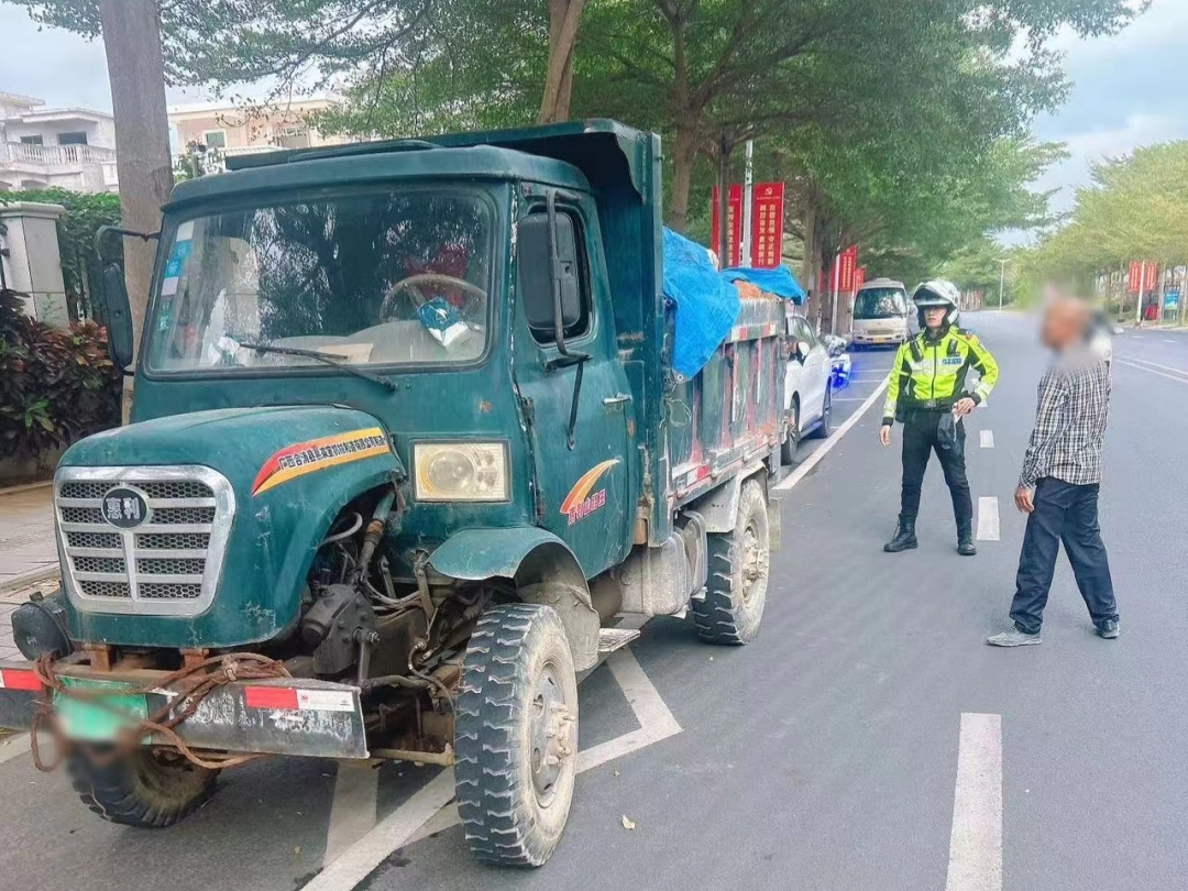 2024年1月10日11时31分,陵水公安交警执勤民警在旅游公路路段对过往车辆进行例行检查时,发现一辆车牌号为川R*****的轻型普通货车行踪诡异,执勤民警立即将其叫停进行检查。经对驾驶人相某某车辆检查发现,其存在驾驶安全设施不全的机动车的交通违法行为。对此,陵水公安交警根据相关法律法规对其处以罚款100元。