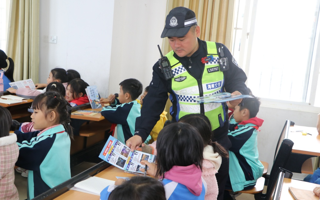 为切实加强校园交通安全宣传教育,全面提高中小学生寒假期间交通安全意识和自我防护意识,预防和减少涉生道路交通事故的发生。1月24日,陵水公安交警寒假交通安全进校园宣传活动的第三站,来到了提蒙中心小学。
