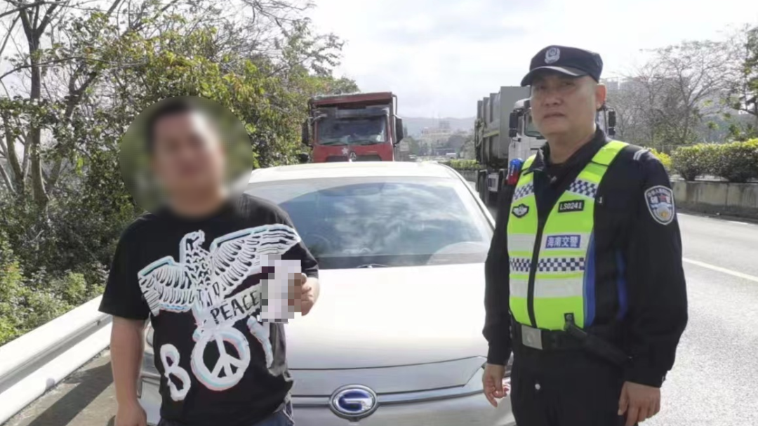 2024年1月31日,陵水交警高速路中队根据今冬明春暨春运交通安全专项整治行动部署,在辖区环岛高速公路巡逻时,发现一辆车牌号为琼BD*****小型轿车停靠在应急车道上,既没有打开双闪警示灯,车辆后方也未放置警示标志。此时路上车流量较大,存在极大的安全隐患。随即,巡逻交警在做好相关安全防护措施后,便上前查看情况。