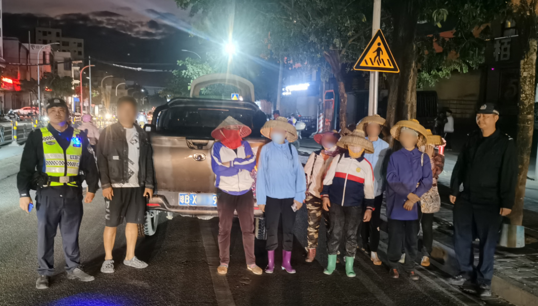 2024年1月30日3时至6时,三亚交警在225国道水南村路段开展今冬明春暨春运交通安全专项整治行动。期间,执勤交警发现一辆琼BX***9牌皮卡车后车厢坐着3人,且无任何防护措施,存在极大安全隐患,执勤交警立即将其拦停接受检查。
