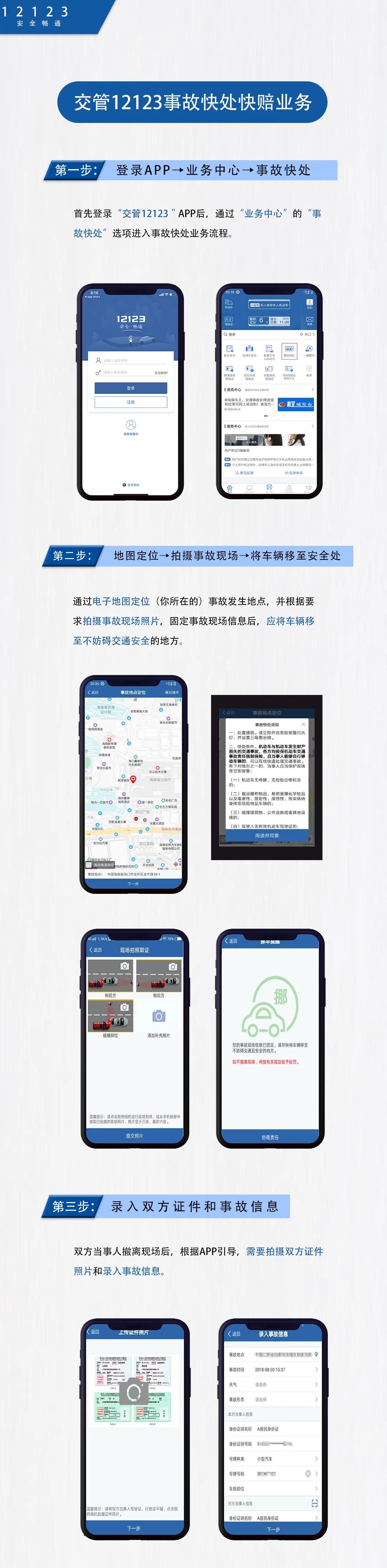 交警表示,简而言之,发生人未伤车能动的轻微交通事故,可以通过交管12123APP自拍照、快撤离。