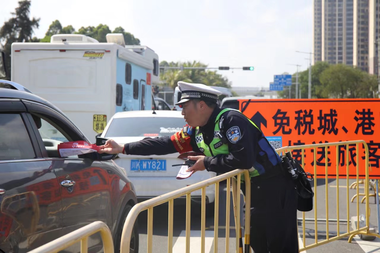 全省交警启动“三道防线”:第一道防线是各市县精准引导提示全省瓜果蔬菜基地、客货运企业等源头企业和外省游客较多的酒店、住宅区提示错峰出行,同时全力保障瓜果蔬菜运输绿色通道畅通。 第二道防线是在环海口市周边5个市县高速公路入口、国省道主要路口路段连续设置提示引导标识标牌,设置疏导岗,引导车辆进入临时停车场,精准放行车辆前往海口“三港”。第三道防线是在海口市港口周边路段及停车场部署1500余名警力、志愿者等力量,实行24小时勤务,设岗查验,按照“客货分离”“预约通行”原则放行,强化港口周边道路管控。