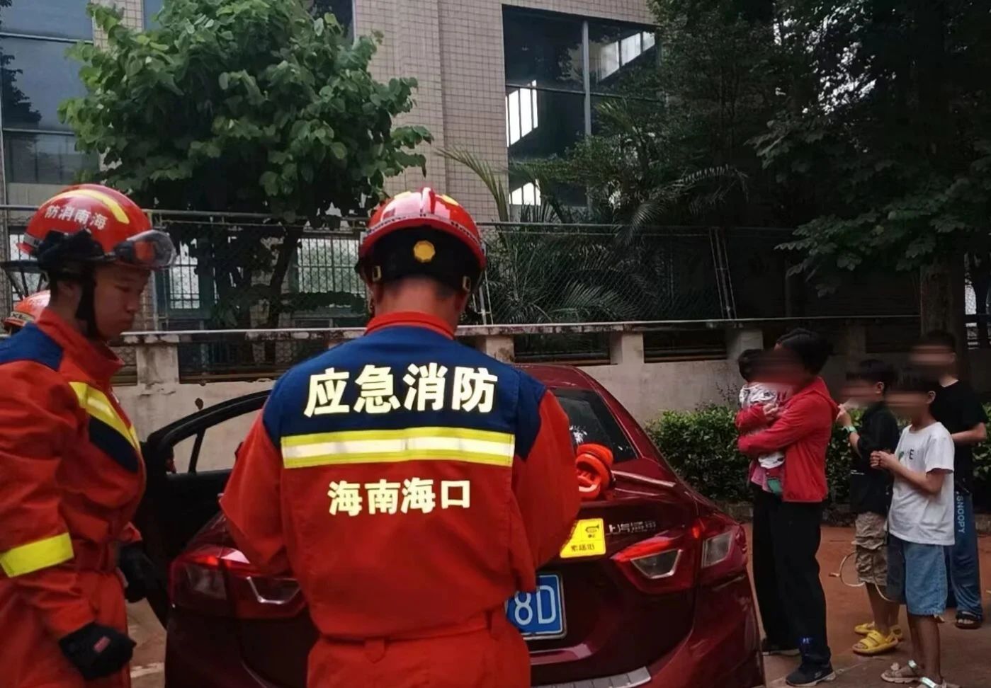 海口市美兰区海甸岛二东路某小区内一婴儿被锁在车中,情况十分危急。