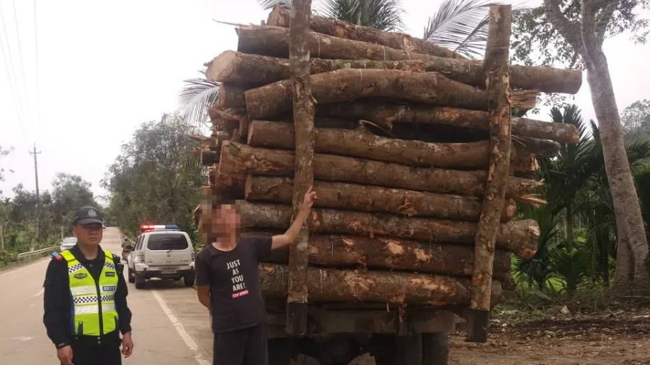 琼中公安交警在辖区执勤时,发现一辆湘07 H***牌照的拖拉机涉嫌超载超重,交警立即示意该车靠边停车接受检查。经查,该车核载3390kg,实载13840kg,超载高达308%。进一步检查发现,驾驶人刘某还对车辆进行了非法改装。