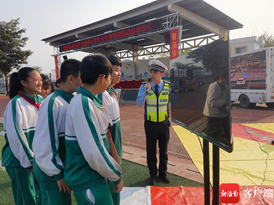启动仪式后,儋州市公安局把“马路”搬到了现场,生动模拟了鬼探头、开门杀、视野盲区等危险瞬间,通过生动的情景演绎,让在场的学生们从视觉和听觉上感受到了危险的存在,在互动中学会如何安全过马路以及严格遵守交通规则等基本交通安全常识,将交通文明规范一点一滴地灌输给每个学生。现场还通过摆放展板、发放宣传资料等方式科普相关安全知识。