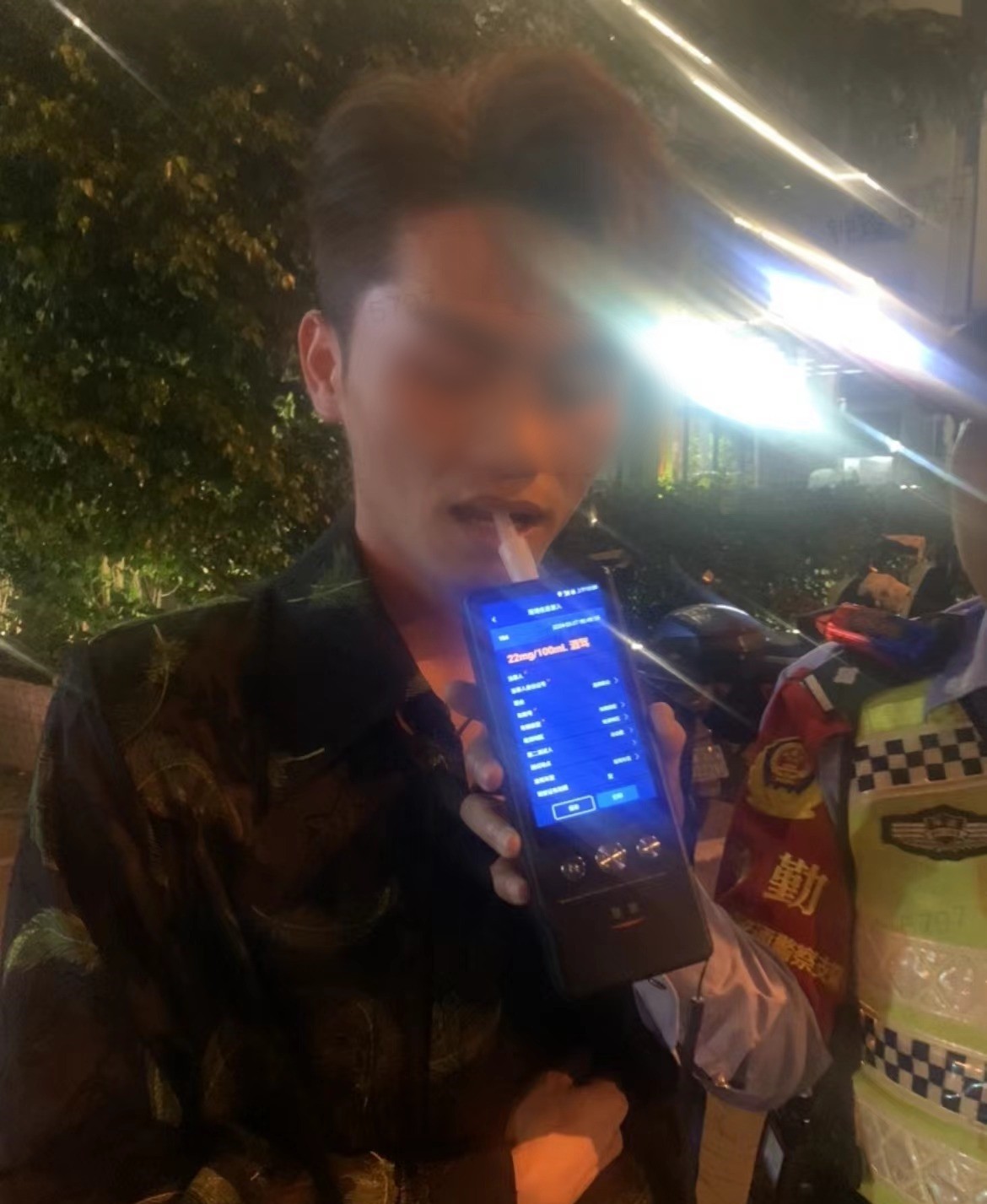 呼气式酒精检测值: 22mg/100ml
