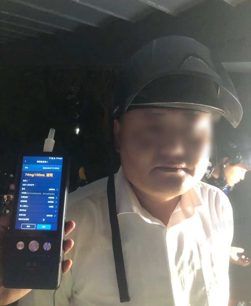 呼气式酒精检测值: 74mg/100ml