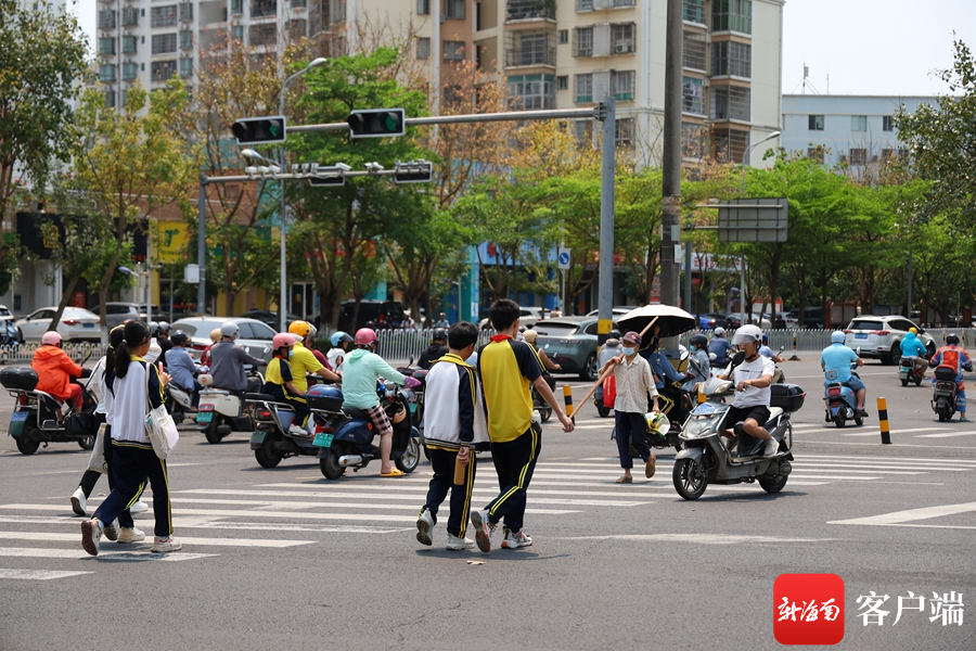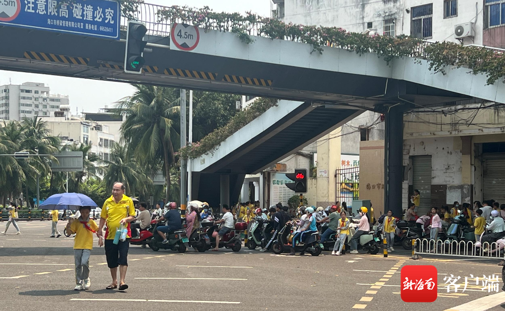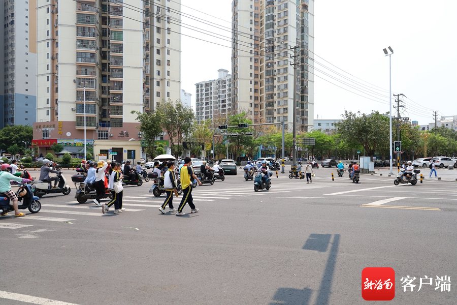在海口市文庄第一小学,学生放学期间,斑马线上聚集不少学生和家长,不少学生直接闯红灯,存在一定的安全隐患。
