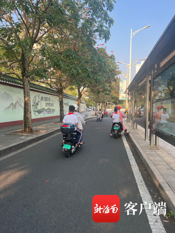 家长载娃骑电动车逆行抢道、闯红灯4月3日上午,随着下课铃声响起,许多学生陆续走出海口市琼山文庄一小校门口,许多家长正探着头寻找自己孩子。该校门口前一条宽约3米的非机动车道,停放着许多家长的电动车,过往车辆难以通过,现场交通秩序混乱。