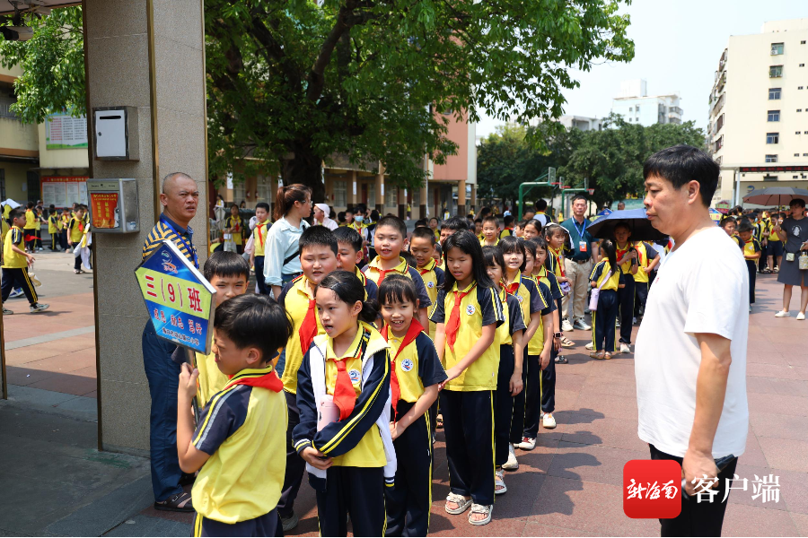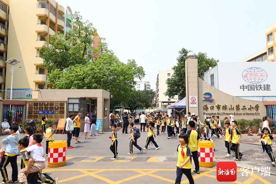 海口市琼山第二小学中午放学,学生有序排队出校门。记者 林鸿羽 摄