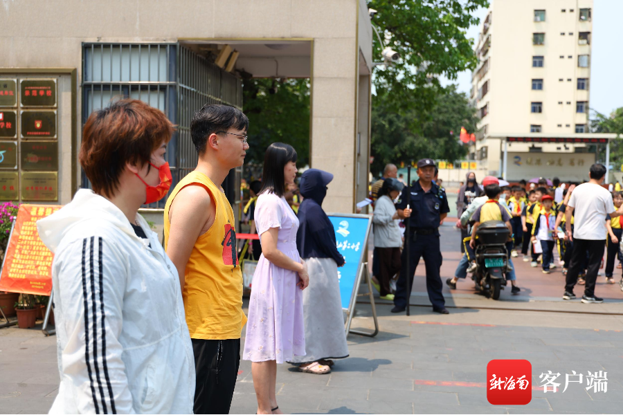 海口市琼山第二小学学生家长组成的护学岗。记者 林鸿羽 摄