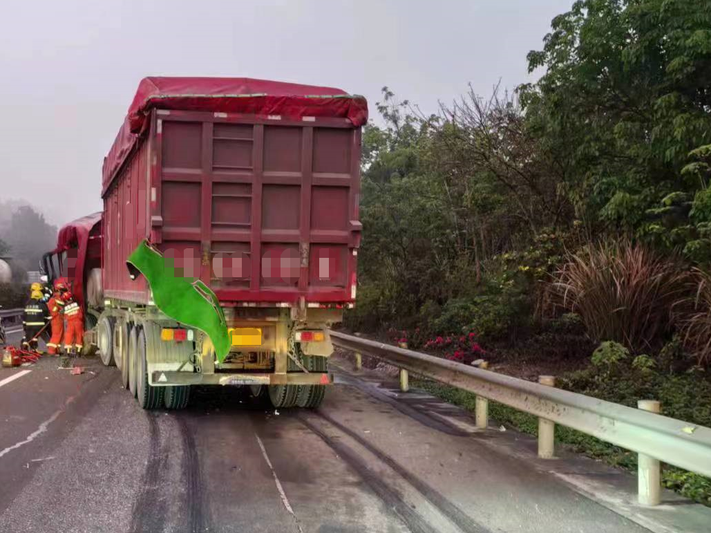 2024年3月21日2时15分许,海南省澄迈县,一辆重型厢式货车行驶至海三高速时,与一辆因没油而停靠在右侧行车道内的重型半挂牵引车发生追尾碰撞。
