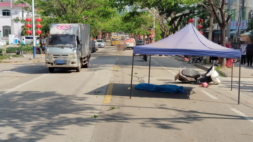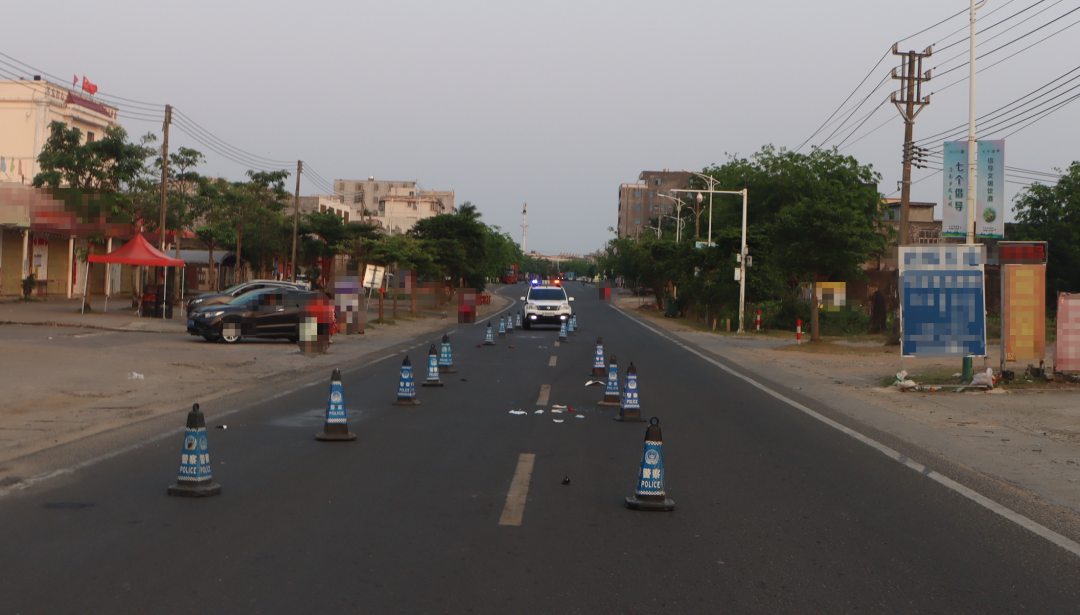 2024年4月17日07时39分许,海南省万宁市,一辆普通二轮摩托车行驶至新中农场新中加油站前路段时,与横过道路的1名行人发生碰撞。