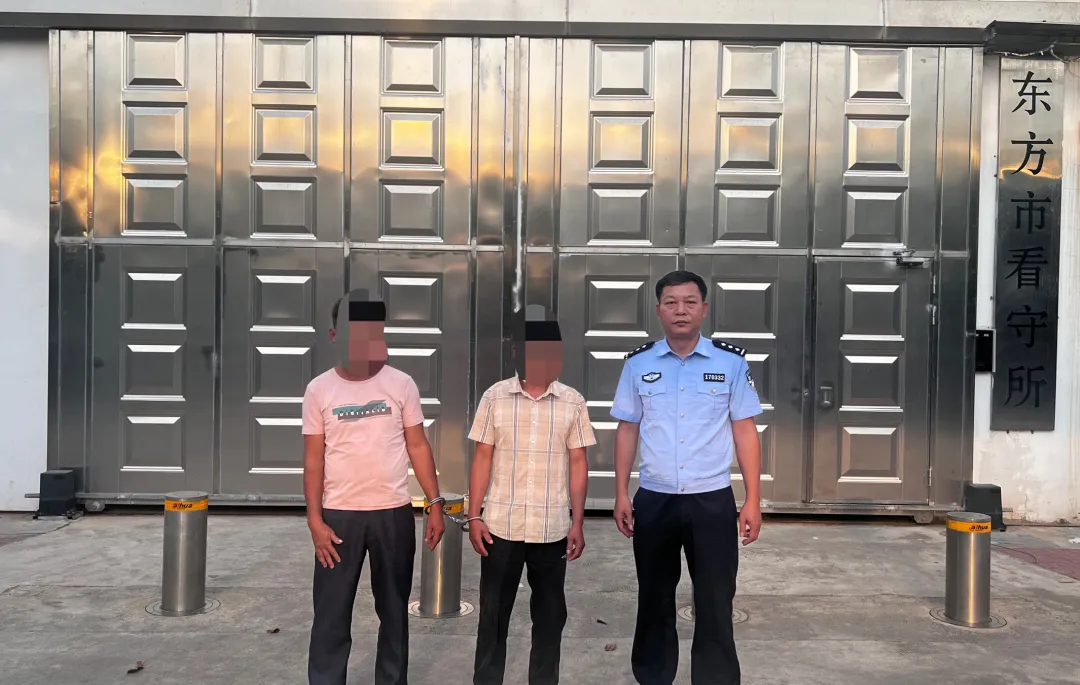 5月22日,海南东方公安交警违法处理中队民警将涉嫌危险驾驶罪的犯罪嫌疑人兰某让、唐某文执行刑事拘留。