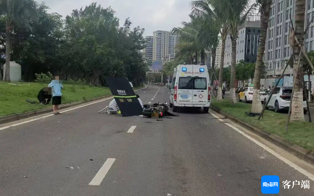 2024年5月9日07时27分许,海南省海口市,一辆普通二轮摩托车行驶至滨江路沣辰外滩小区路段时,与1名行人发生碰撞。
