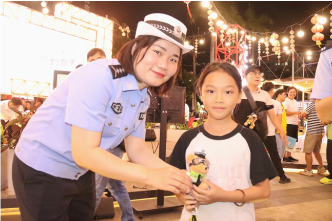 ▲交警为市民小朋友颁发礼品 (摄影 钟玲)